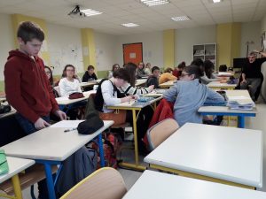 Lors des deux premières séances de l’atelier, le 4 décembre 2018 et le 25 janvier 2019, les élèves ont fait connaissance avec Rémy et ont réalisé des exercices d’écriture divers : abécédaire, mot-valise, expressions détournées, etc. Chaque séance commence par un « échauffement » avant d’amener peu à peu les élèves à produire un court texte de création. Bientôt, les élèves de l’atelier iront écrire en médiathèque, à Marmande centre. Leurs écrits seront mis en valeur au sein du collège Jean Moulin mais aussi à la médiathèque Albert Camus, partenaire de cet atelier.