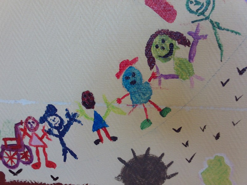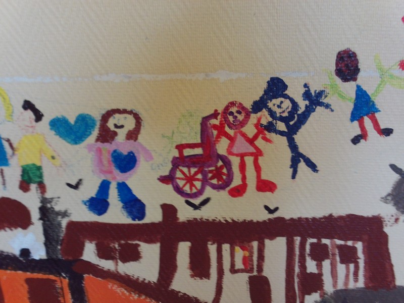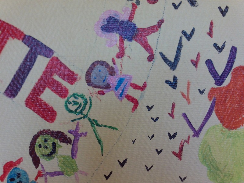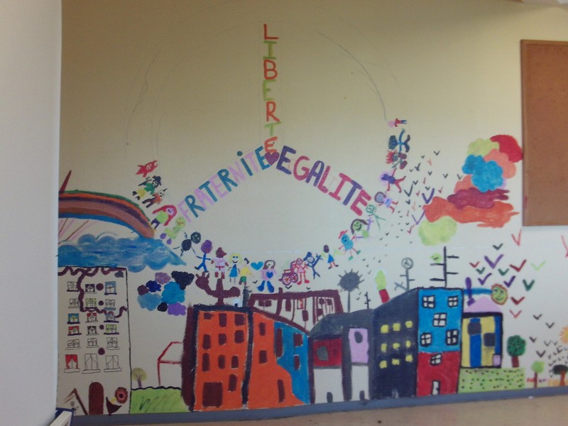 Fresque des 6e4 sur un mur de l’ancien foyer sur le thème du « vivre ensemble »