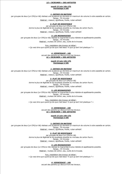 Rencontre 6e6/CM2 Labrunie pour un »déjeuner des artistes »