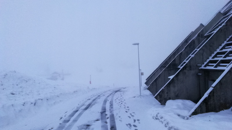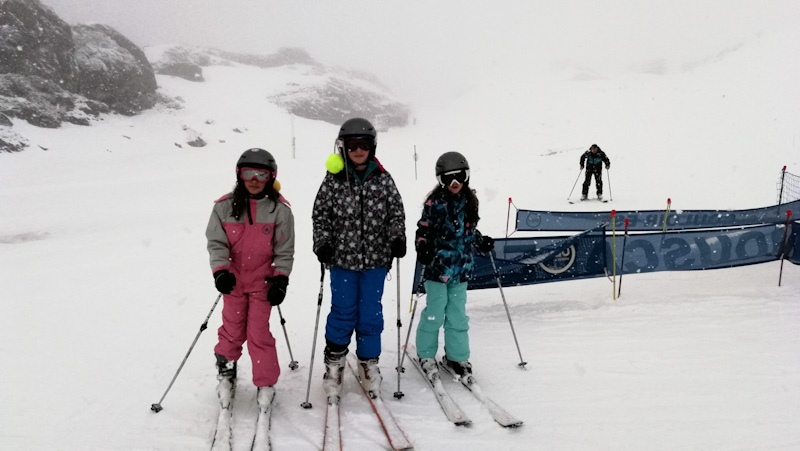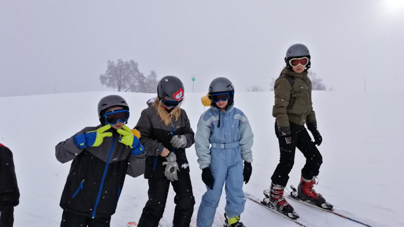Chutes de neige dans la nuit et brouillard neige le matin ont changé les conditions de ski pour nos p’tit loups.