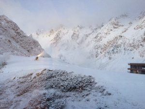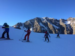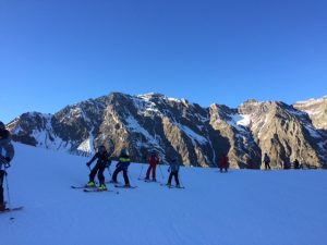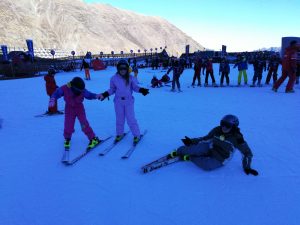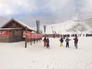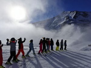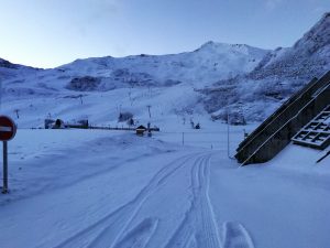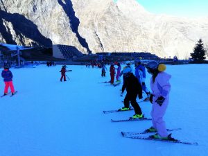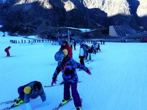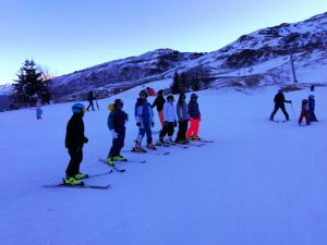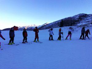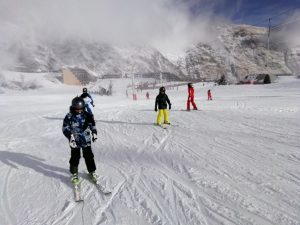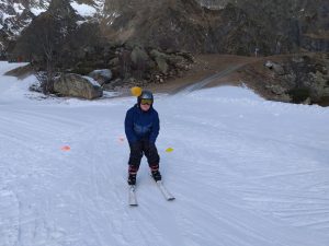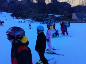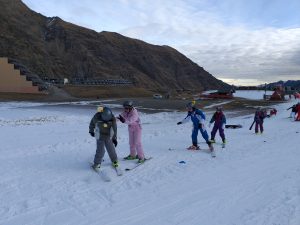 Après avoir pris nos équipements, nous avons rejoint les pistes pour les premières glissades sur une neige rare mais de bonne qualité.