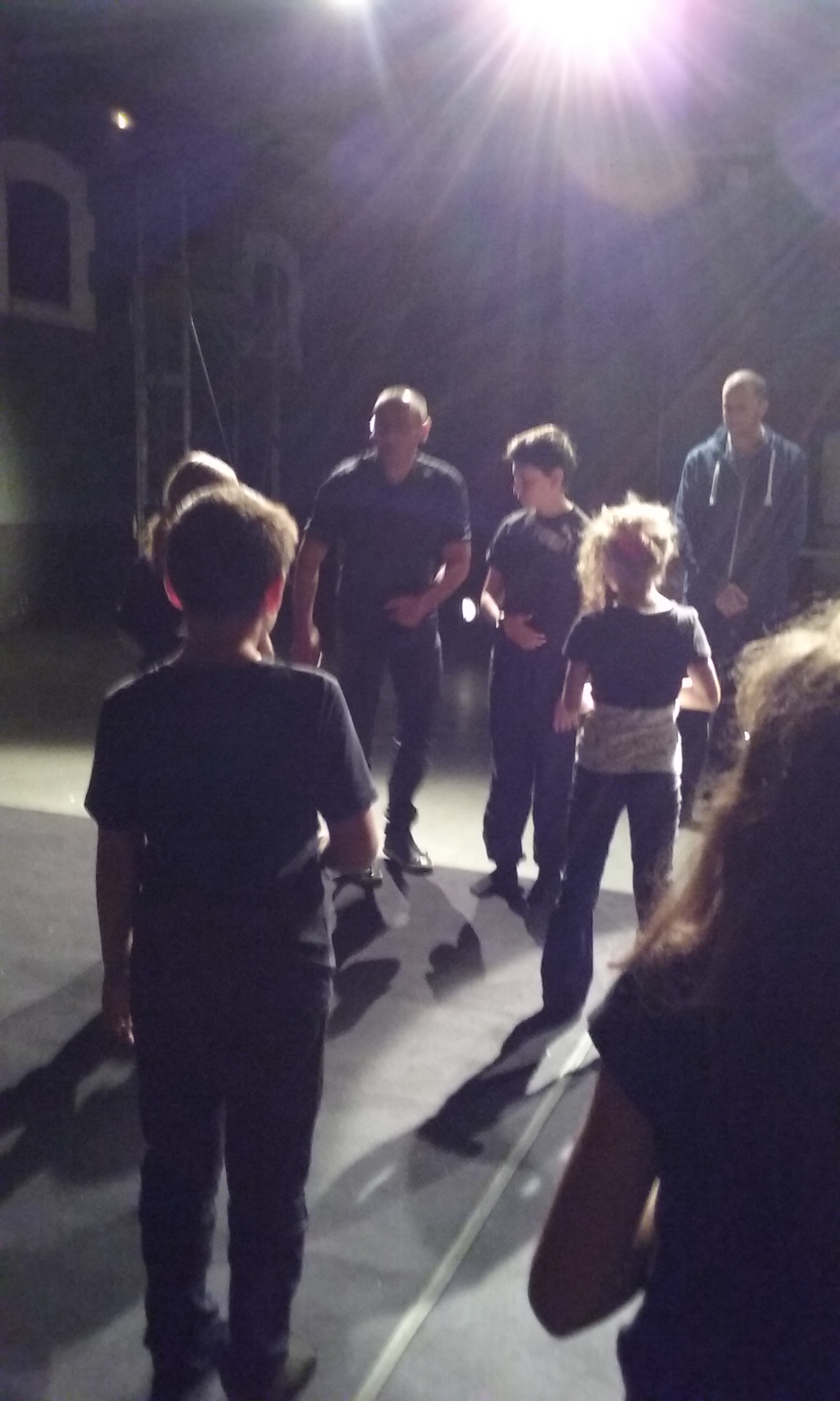 Luc Cognet et Rémy Deney (Compagnie Prométhée) sont arrivés et ont présenté leur métier de metteur en scène et de comédien et ont expliqué ce qu’est un théâtre.