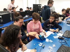 Aujourd’hui, nous avons assemblé des robots « m.bot » et recherché un objet en utilisant les différents capteurs. Pour cela, nous avons initié nos correspondants à la programmation.
