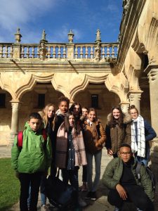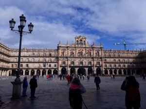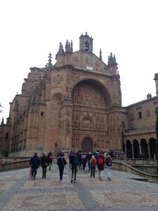 Aujourd’hui, nous avons visité la ville de Salamanque. Sa beauté est digne de sa réputation. Nous avons cherché l’astronaute sur la façade de la cathédrale puis nous nous sommes mis à la place d’un étudiant espagnol et après avoir visité leur université nous avons cherché la fameuse petite grenouille. Un tour complet de la ville et pique-nique et shopping avant un retour sous la pluie! Comme vous le verrez sur les photos, les familles espagnoles nous préparent des pique-niques gargantuesques!